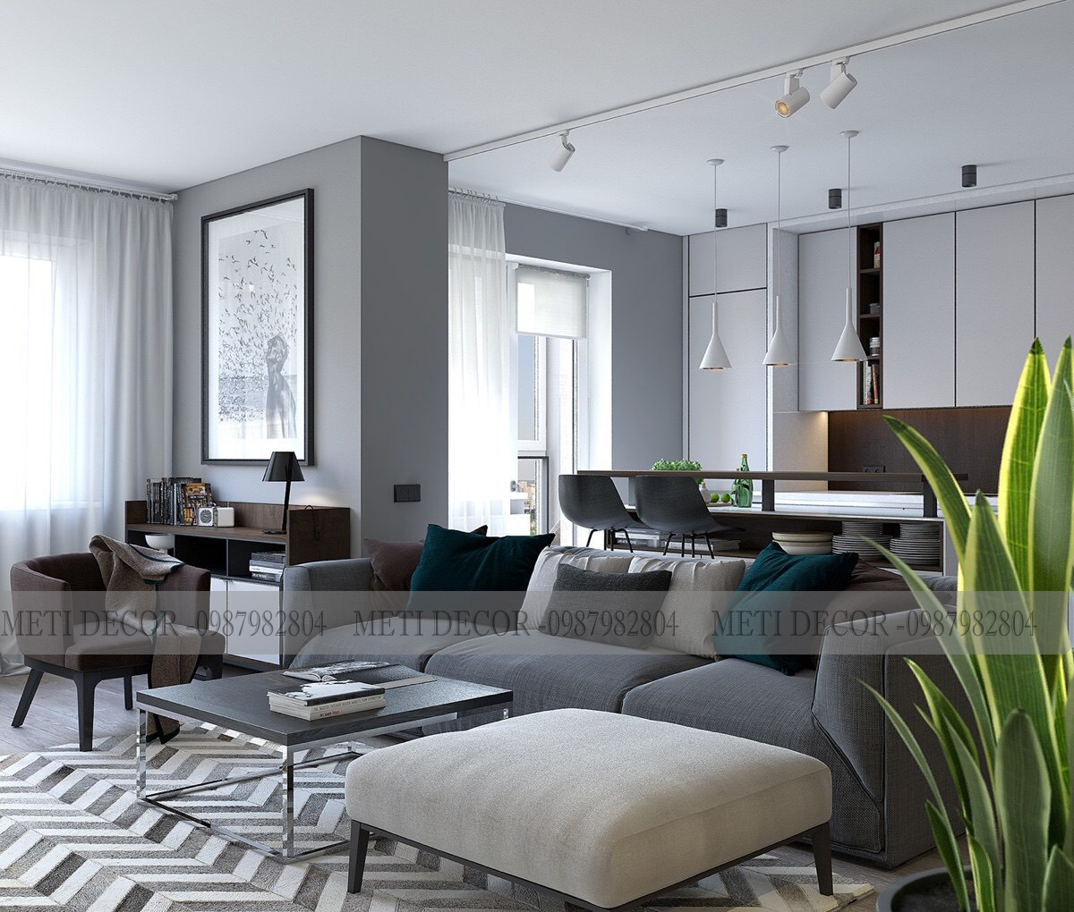 thiet ke va thi cong noi that phong khach chung cu 2019 metidecor