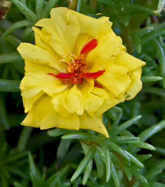 This variety of Portulaca Grandiflora is producing nice bright yellow flowers. The leaves are equall