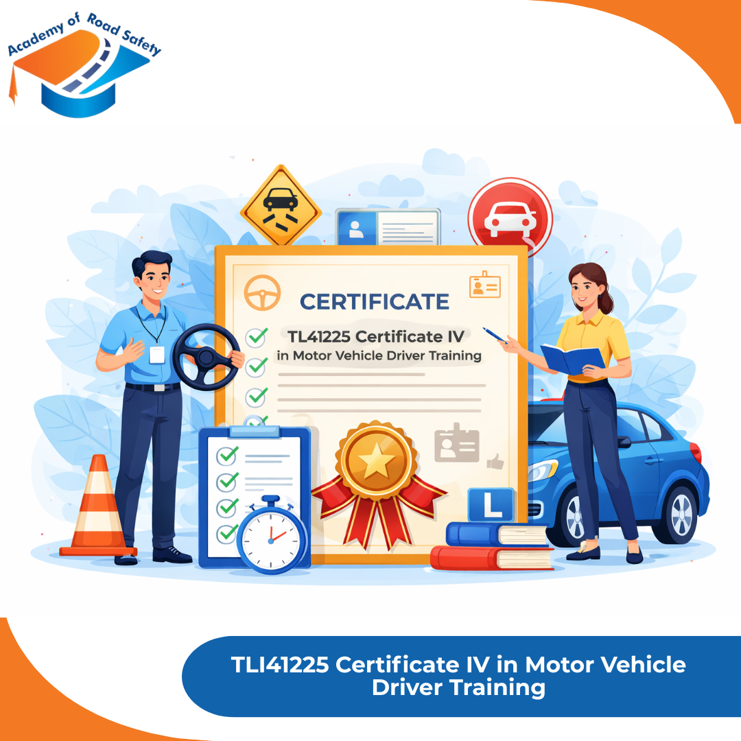 Build your career with Academy Of Road Safety by completing TLI41225 Certificate IV in Motor Vehicle Driver Training. Get nationally recognised qualifications, practical skills, and expert support to become a licensed driving instructor.