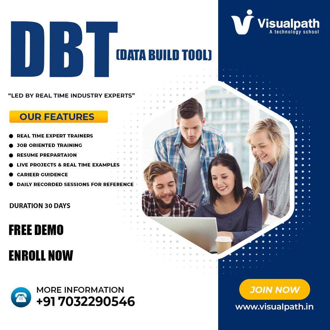 🚀"Visualpath offers the Top DBT Training and Data Build Tool Training in Hyderabad, with expert instructors and hands-on projects. Our course includes resume preparation and job-oriented learning, accessible across India, the USA, the UK, Canada, Dubai, and Australia. Call +91 7032290546 for more details. 24/7 access to recorded sessions provided!"