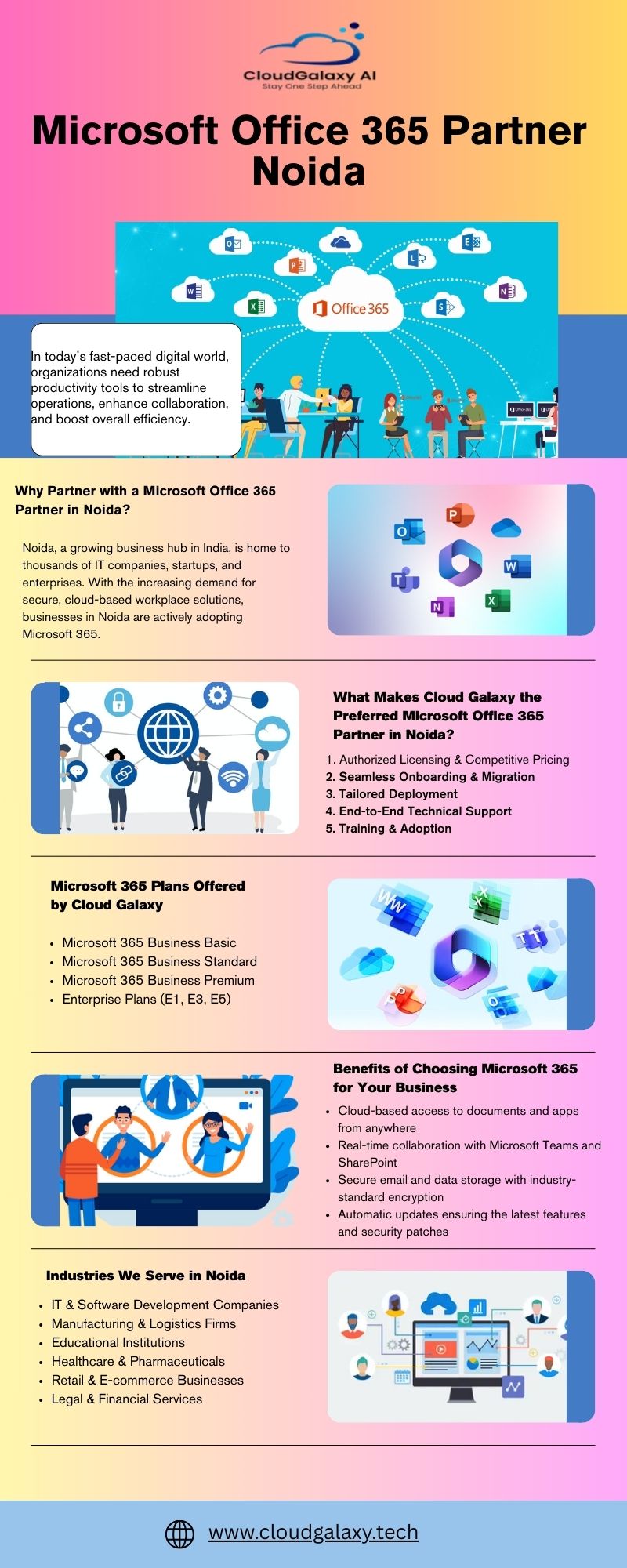 Looking for a trusted Microsoft office 365 partner in Noida? Cloud Galaxy offers seamless Office 365 licensing, setup, and support tailored for businesses of all sizes. As an authorized partner, we deliver secure and scalable Microsoft 365 solutions with expert guidance, easy migration, and 24/7 technical support. From startups to enterprises, we help streamline collaboration and productivity with Office 365 tools. Explore Office 365 solutions with Cloud Galaxy today!