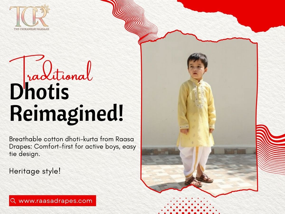 Traditional dhotis give a comfortable and stylish look. Perfect for festive occasions, family functions, and traditional events with a classic and fresh appeal.