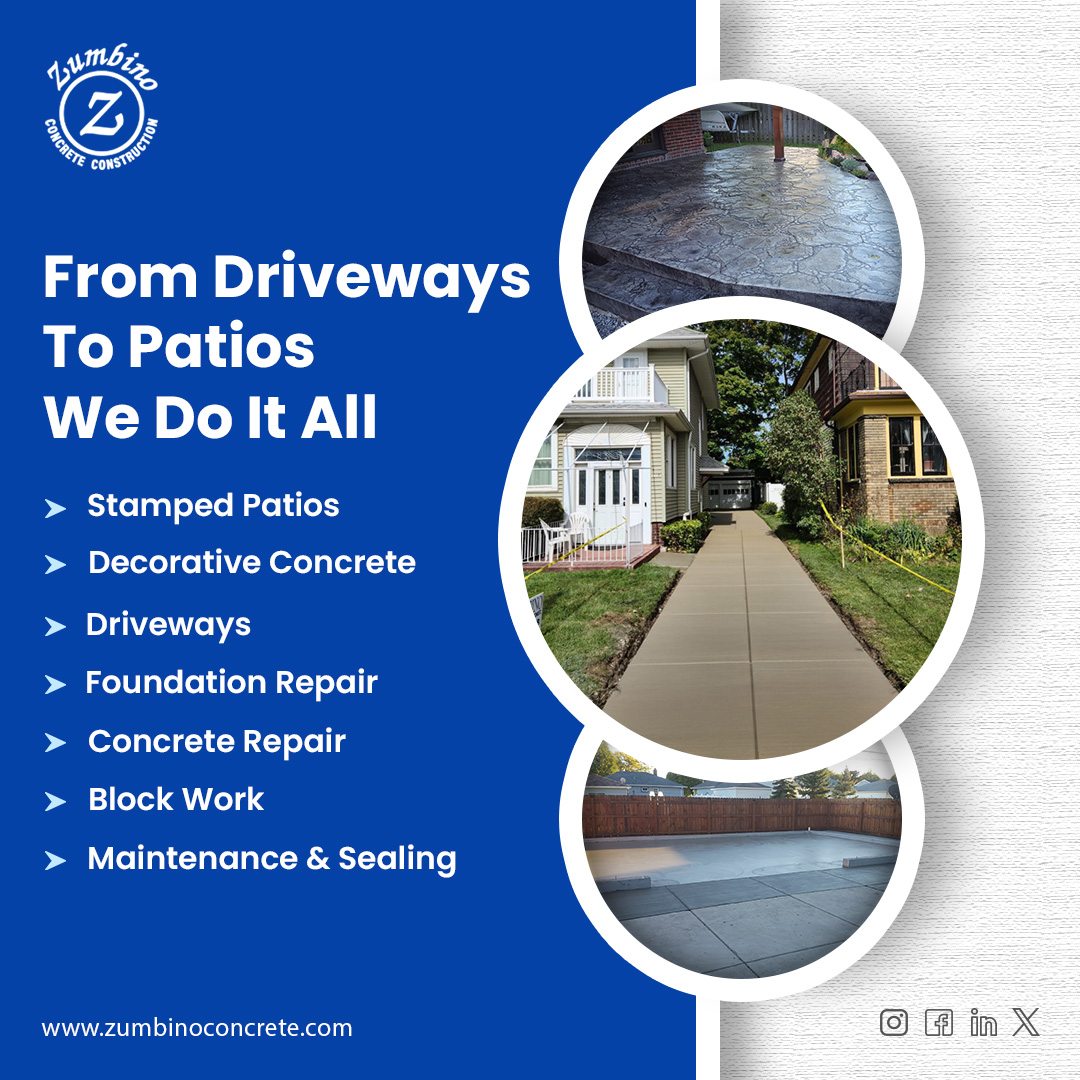 Transform your space with durable, stylish, and high-quality concrete solutions from Zumbino Concrete.
