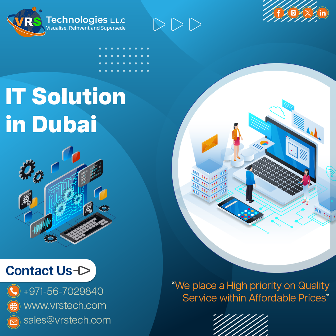 VRS Technologies LLC is top leading provider of IT Solution in Dubai. we have a team of highly qualified as well as experienced team for providing the iT Solutions for company. Contact us: +971 56 7029840 Visit us: https://www.vrstech.com/it-solutions-dubai.html