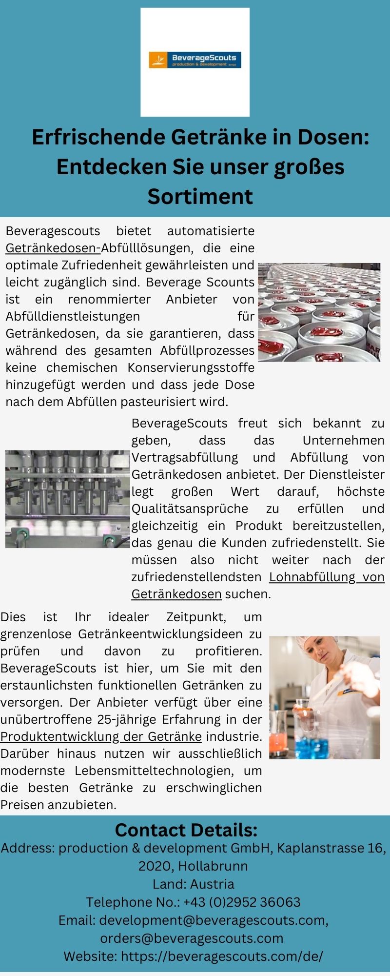 BeverageScouts ist der perfekte Ort, um Ihre Suche nach einem erfahrenen Getränkedosen abfüller abzuschließen. Dosen werden in 12er- oder 24er-Trays verpackt und als verantwortungsvoller Anbieter von Dosenabfülllösungen individuell befüllt. Selbstverständlich werden alle unsere Dosen vor der Abfüllung pasteurisiert und sind daher frei von chemischen Konservierungsmitteln. https://beveragescouts.com/de/getraenkeabfuellung-abfuellanlage.php