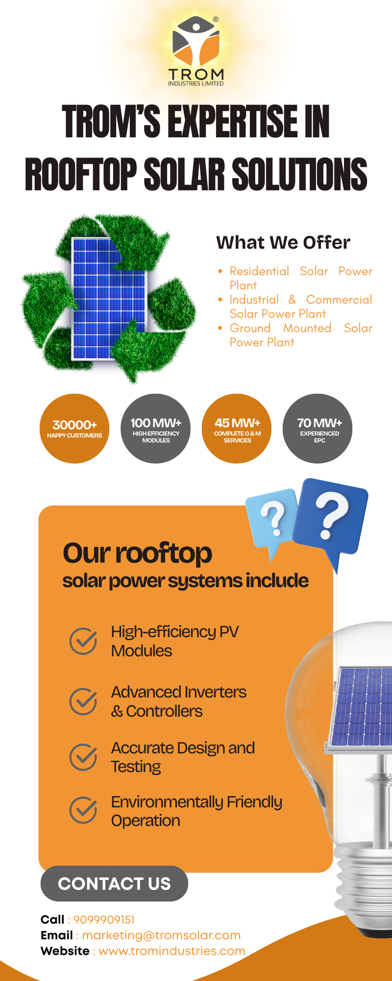 This infographic highlights Trom Industries’ expertise in delivering cutting-edge rooftop solar solutions. With a commitment to innovation, sustainability, and cost-efficiency, Trom Industries designs and implements high-performance solar systems tailored to residential, commercial, and industrial needs. Their end-to-end services ensure seamless installation, reliable performance, and long-term energy savings, making them a trusted partner in the transition to clean, renewable energy.