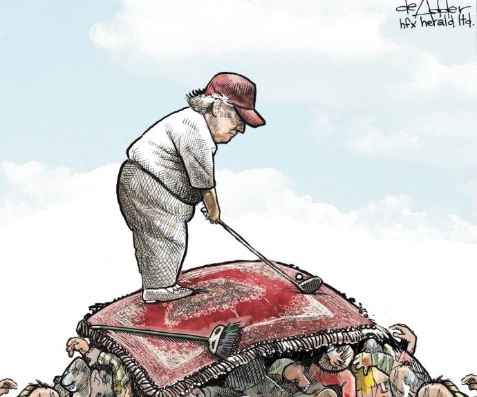 Trump golfs on bodies