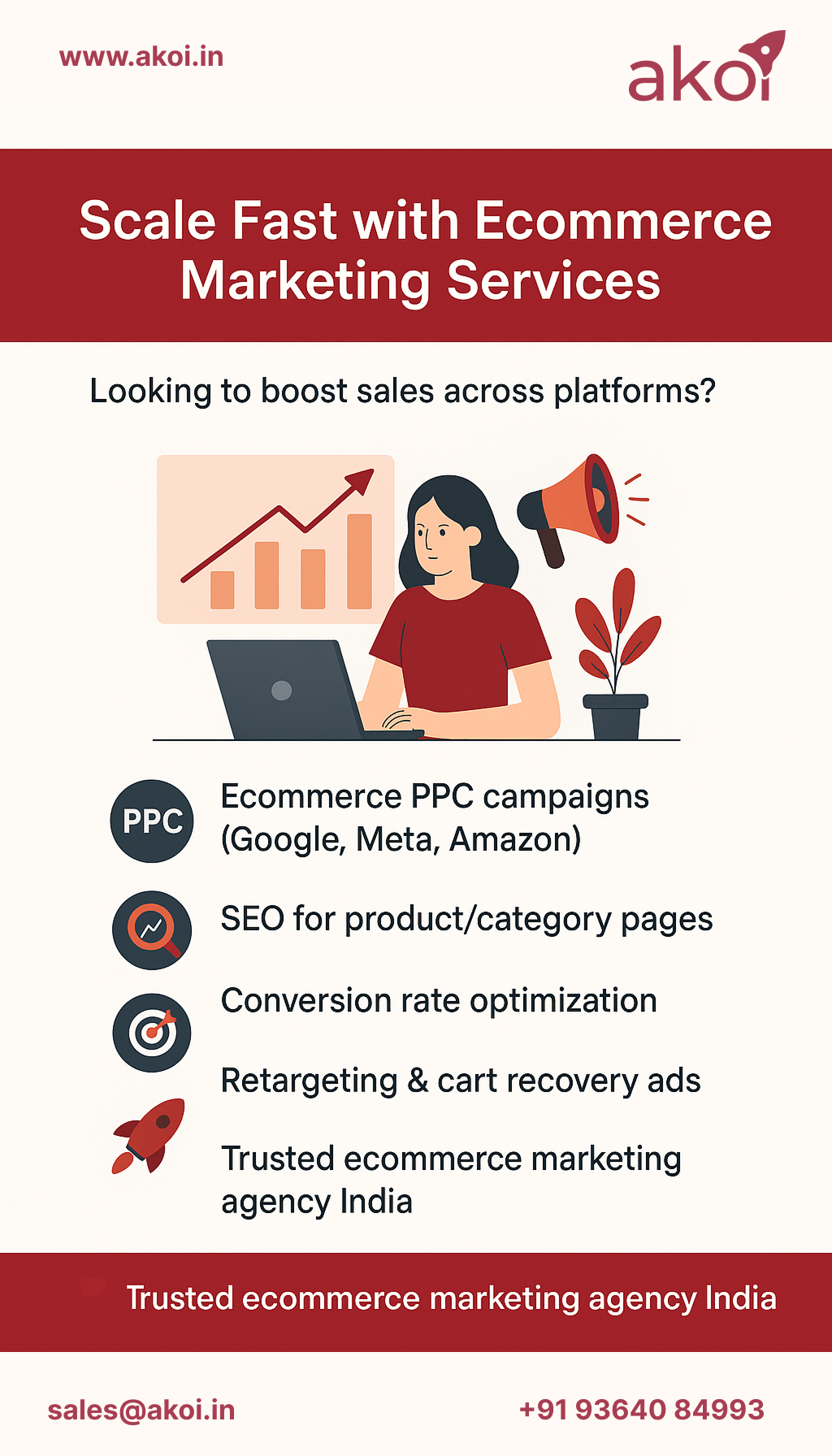 Want to grow your ecommerce brand faster? We deliver result-oriented ecommerce marketing services tailored to your business goals. Our expertise includes PPC management across Google, Meta, and Amazon, SEO for product and category pages, and conversion rate optimization to improve sales performance. With effective retargeting and cart recovery strategies, we help you reduce drop-offs and maximize ROI. As a reliable ecommerce marketing agency in India, we ensure your online store gains visibility, engagement, and consistent growth.