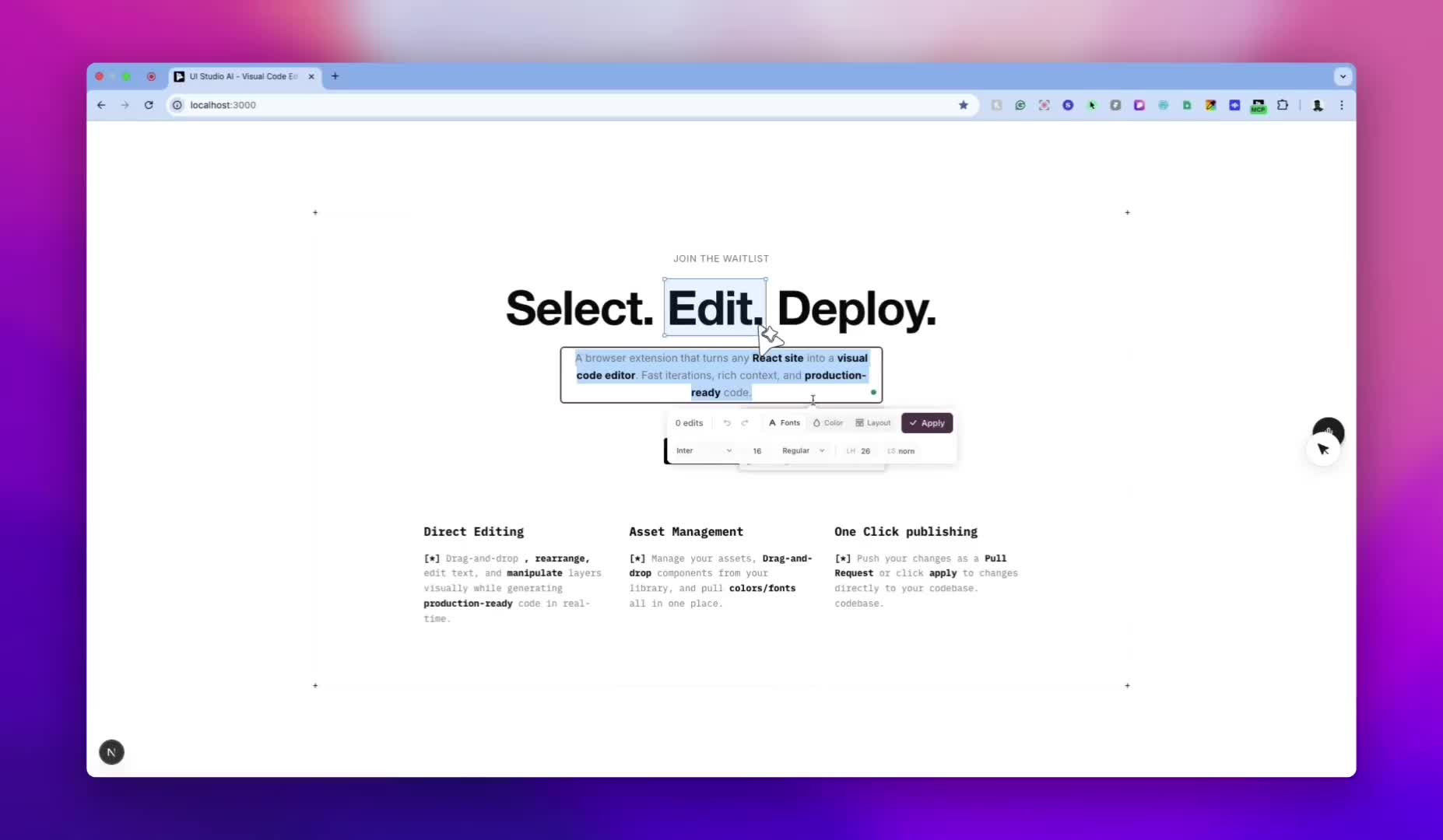 Edit any image by touching the image preview