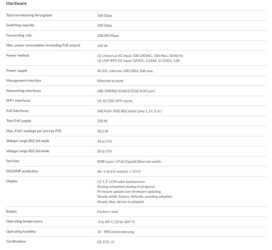 Ubiquiti Unifi USW Enterprise 48 PoE Switch Enterprise 48 PoE4