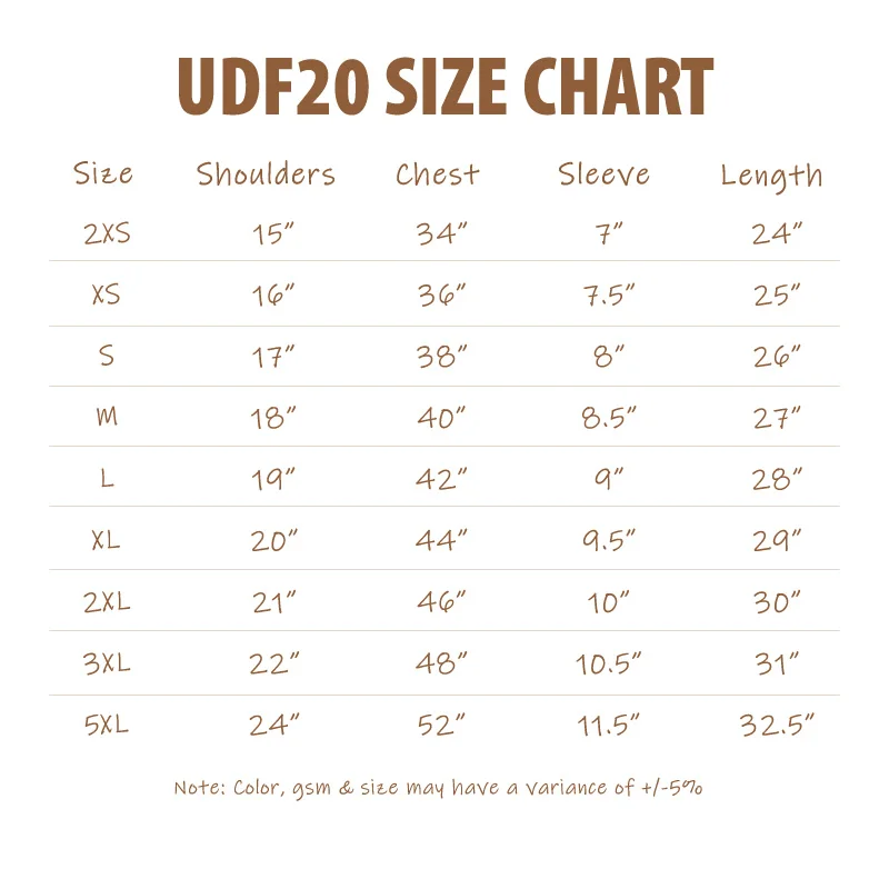 UDF20 Size Guide 1
