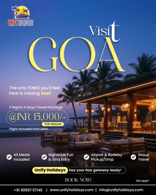 Experience Goa’s beaches, nightlife, meals, and seamless travel with Unify Holidays—perfect budget-friendly escape packed with fun and comfort.