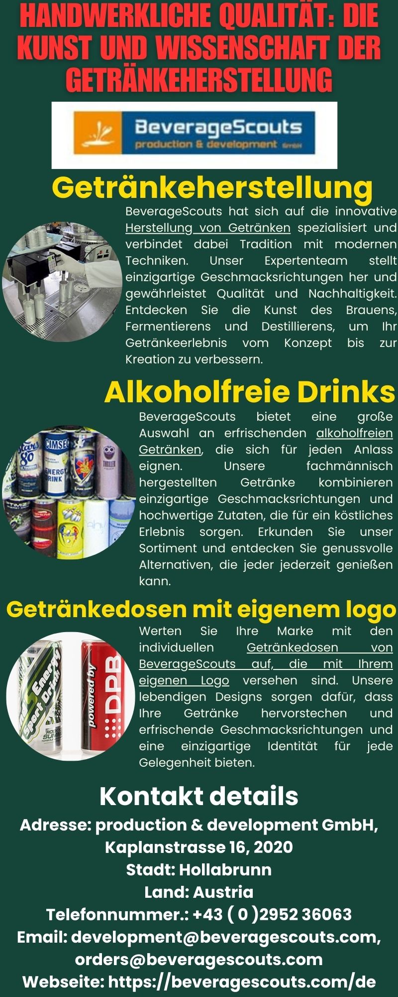 BeverageScouts ist führend in der Getränkeherstellung und verbindet handwerkliches Können mit modernster Technologie. Unser engagiertes Team konzentriert sich auf Qualität und Kreativität und stellt außergewöhnliche Getränke her, die die Sinne erfreuen. Entdecken Sie unseren Prozess von der Beschaffung der Zutaten bis zum Endprodukt, damit jeder Schluck ein unvergessliches Erlebnis wird.