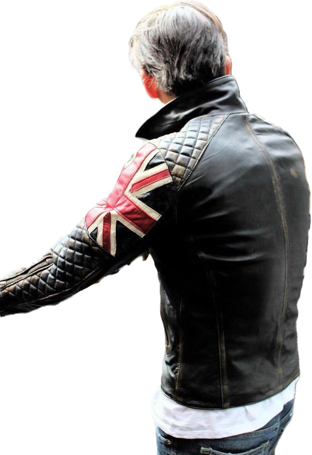 Union Jack UK Flag Cafe Racer Vintage Men Black Motorcycle Biker Leather Jacket 5