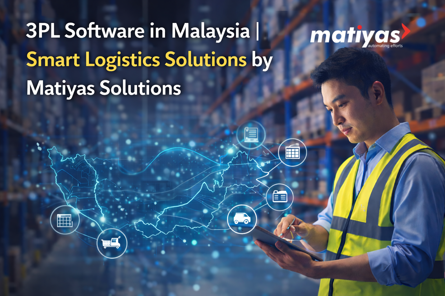 This image represents smart 3PL software in Malaysia designed to modernize logistics and supply chain operations. Matiyas Solutions delivers an integrated 3PL platform that helps logistics providers manage warehouse operations, inventory control, order fulfillment, and billing with real-time visibility and accuracy. The solution supports scalable growth and operational efficiency for modern logistics businesses.