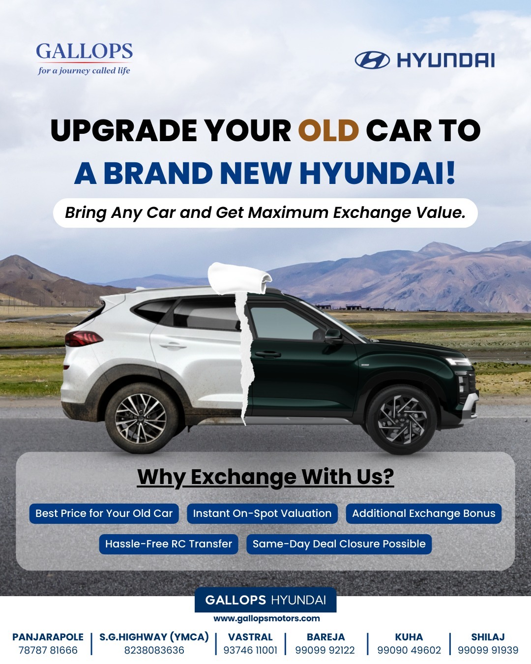 We offer transparent on-spot valuations and additional exchange bonuses to ensure you get the best deal possible. From paperwork to the final keys, we make it a smooth exchange.