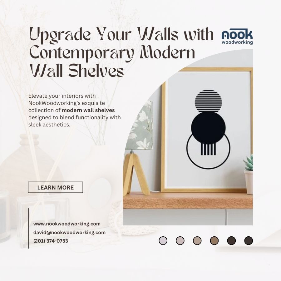 Elevate your interiors with NookWoodworking’s exquisite collection of modern wall shelves designed to blend functionality with sleek aesthetics. Crafted from premium hardwoods with hidden bracket mounting, these floating shelves offer a minimalist and timeless solution to organizing and decorating any space. Perfect for living rooms, kitchens, or offices, their clean lines and versatile designs enhance any modern décor. Whether used for displaying art, books, or plants, these shelves maximize wall space while adding natural warmth and elegance. Upgrade walls with a practical yet stylish storage solution crafted with expert care and attention to detail.