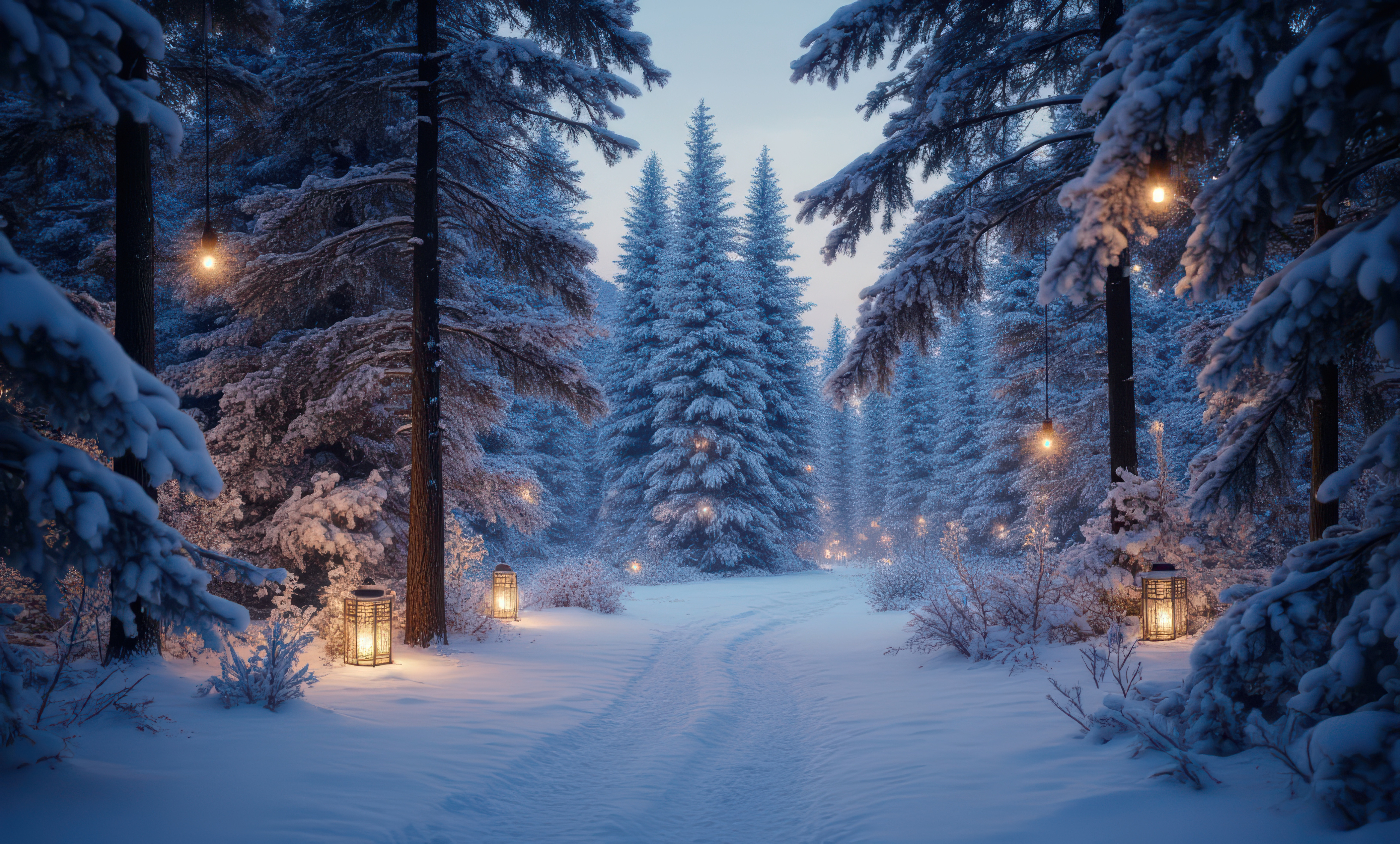 vecteezy a snowy path through the woods with lights 72608052