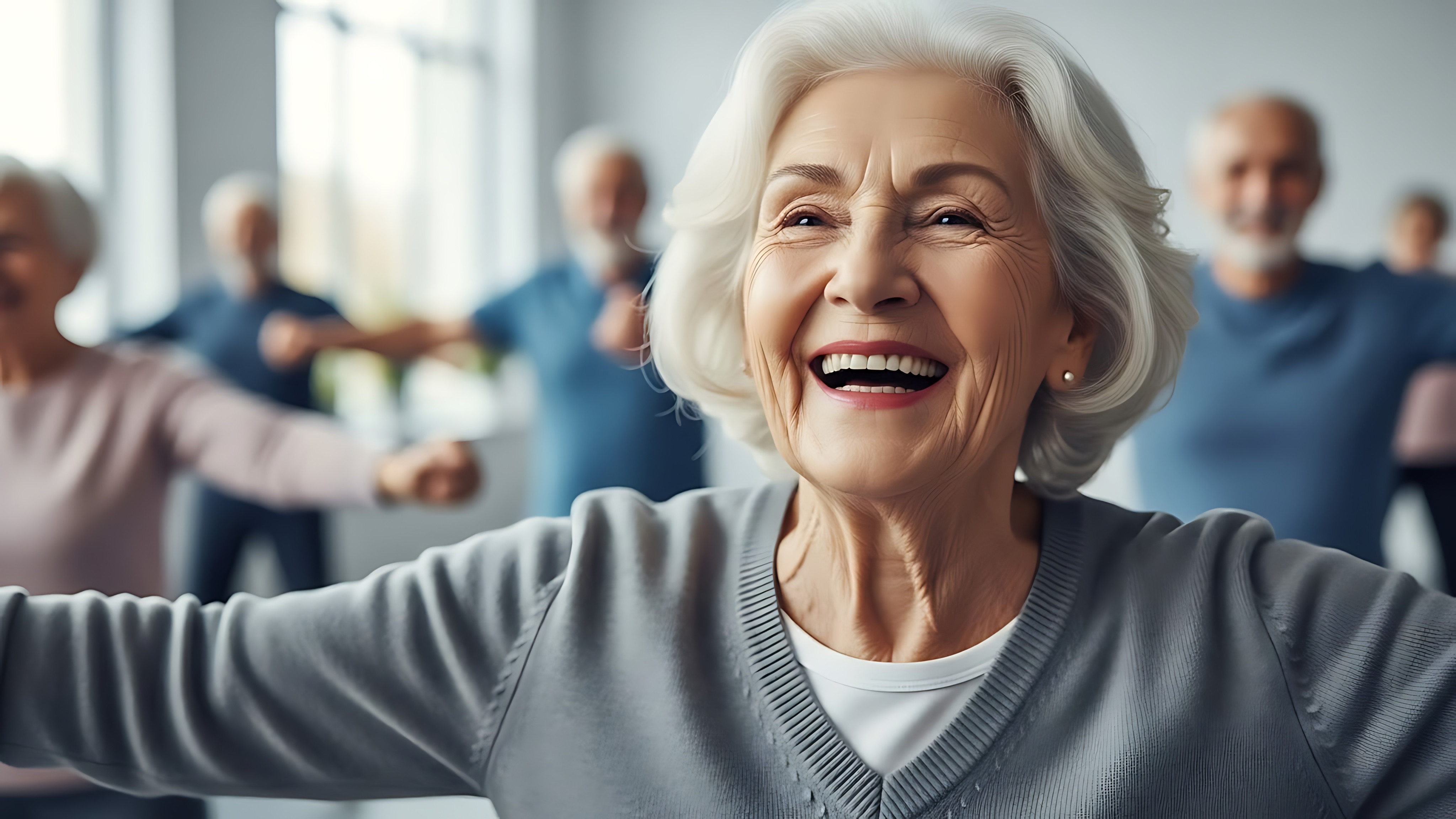 vecteezy joyful senior woman participating in a group fitness class 75322182