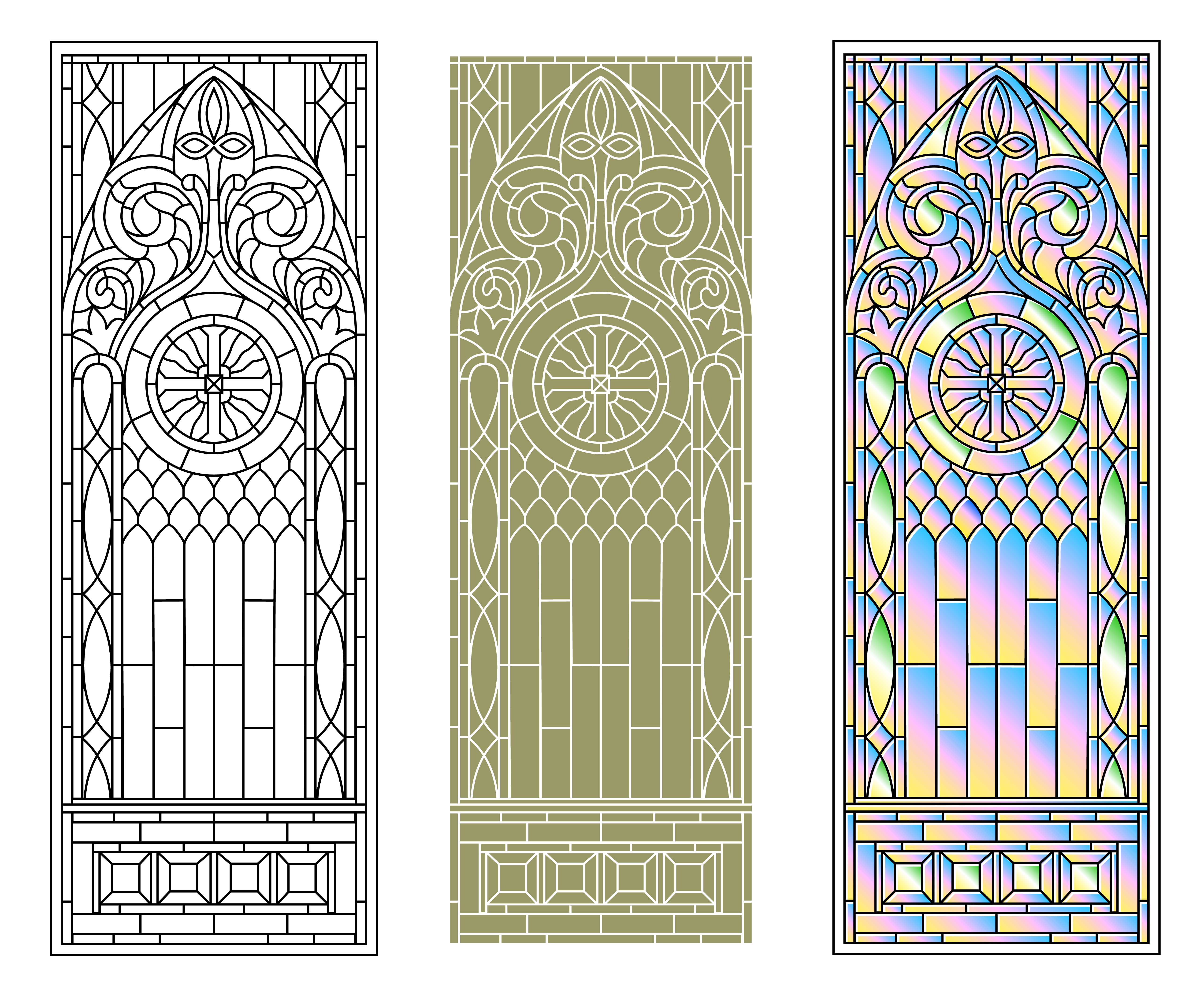 Vector elements. Blank for a classic stained-glass window with floral ornaments. Classic stained gla
