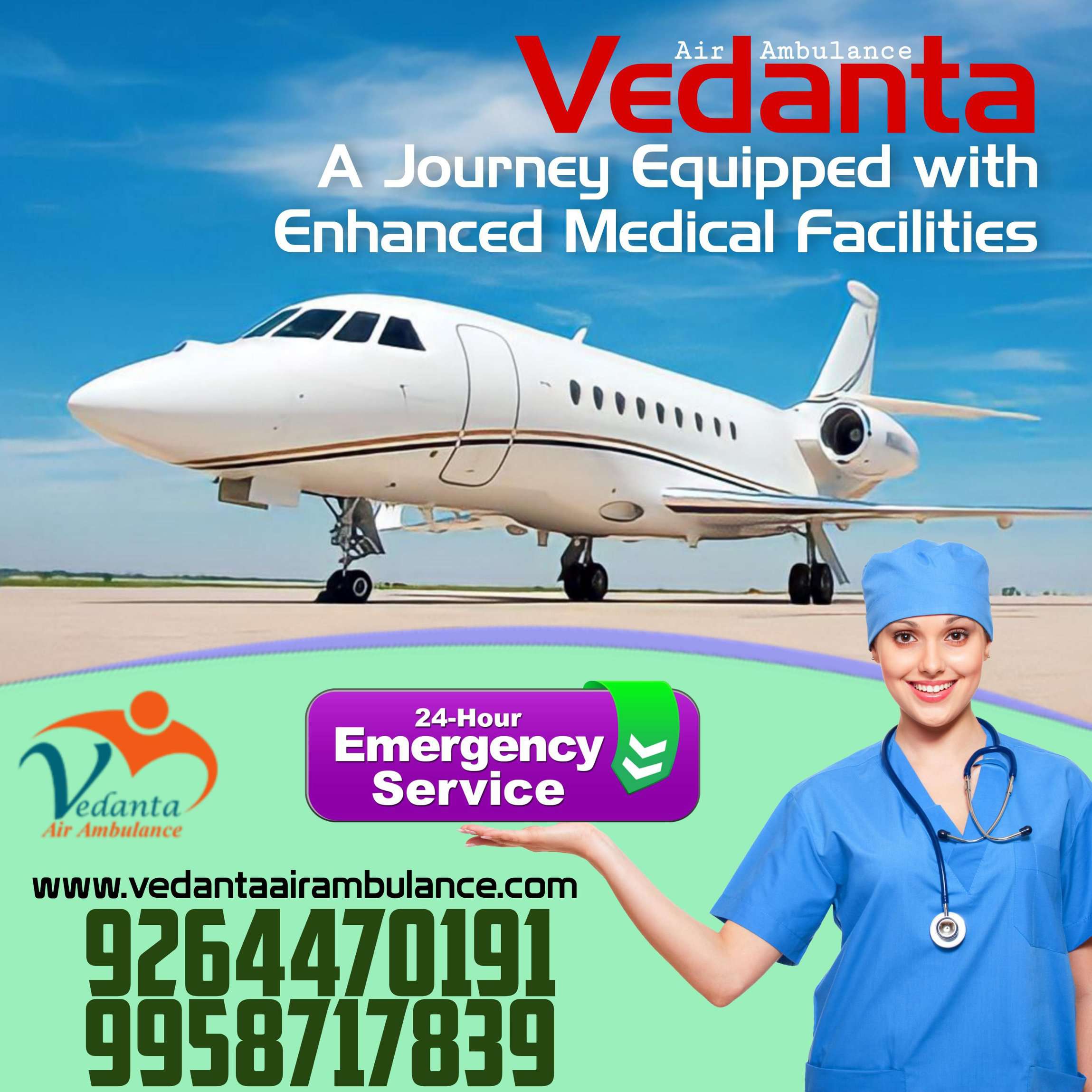 Vedanta Air Ambulance Service in Varanasi transfers patients with proper care and comfort via state-of-the-art medical flights having ICU facilities. We remain at the service of the people from the beginning to the end of the journey.