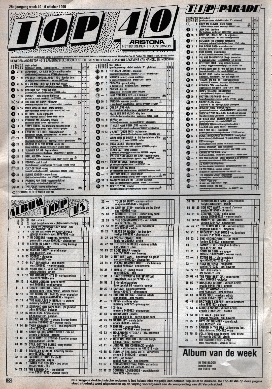 Veronica Radio TV 104 Weekblad 13 tot en met 19. Oktober 1990