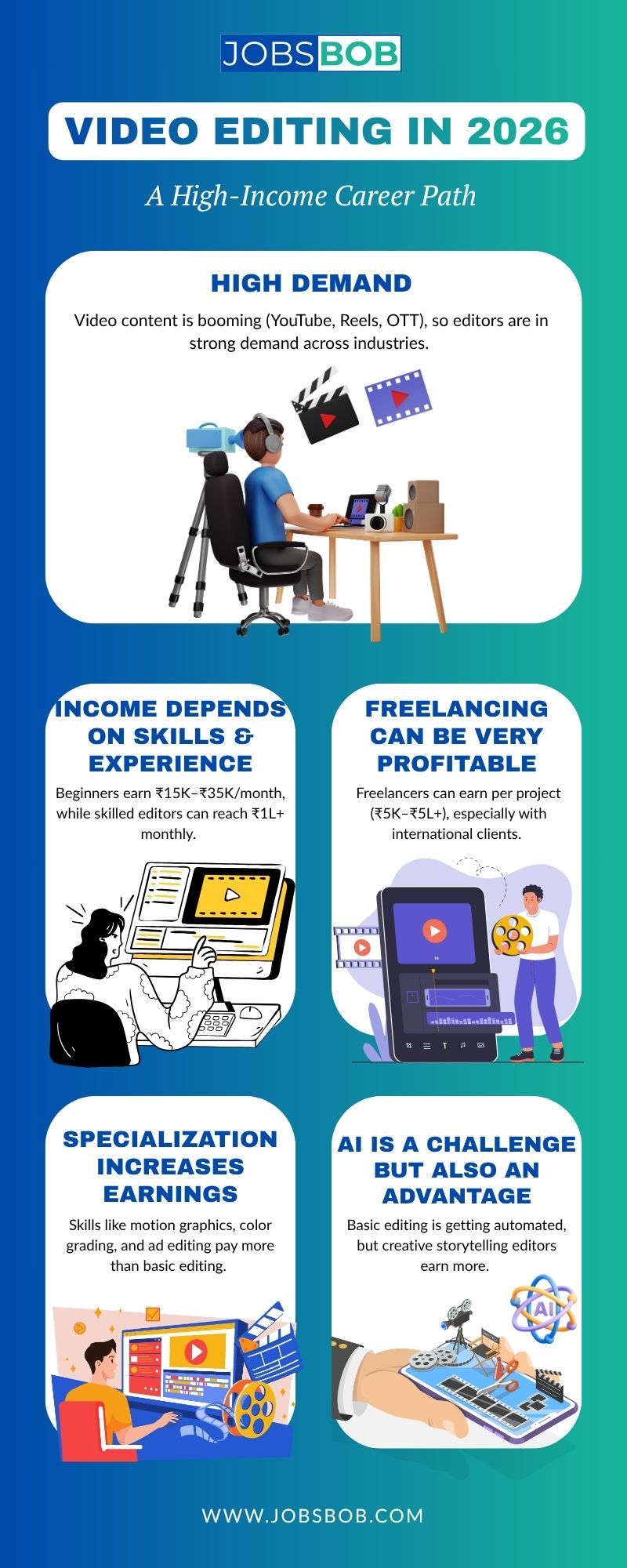 With the explosion of video content, video editing has become one of the most profitable digital careers. Editors who specialize in motion graphics, branding, and storytelling can command premium rates across industries worldwide.