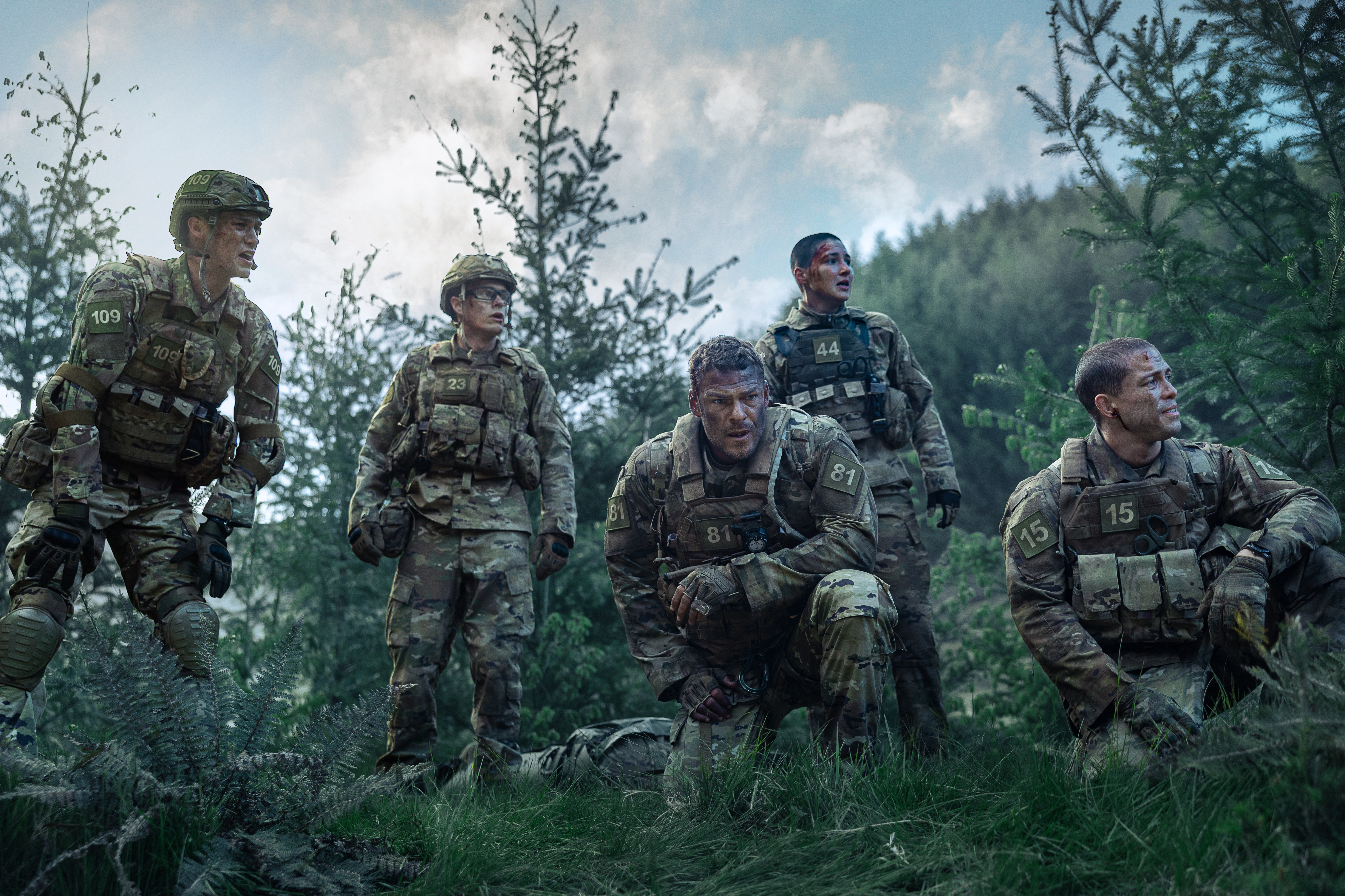War Machine. (L-R) Jack Patten as 109, James Beaufort as 23, Alan Ritchson as 81, Alex King as 44 an