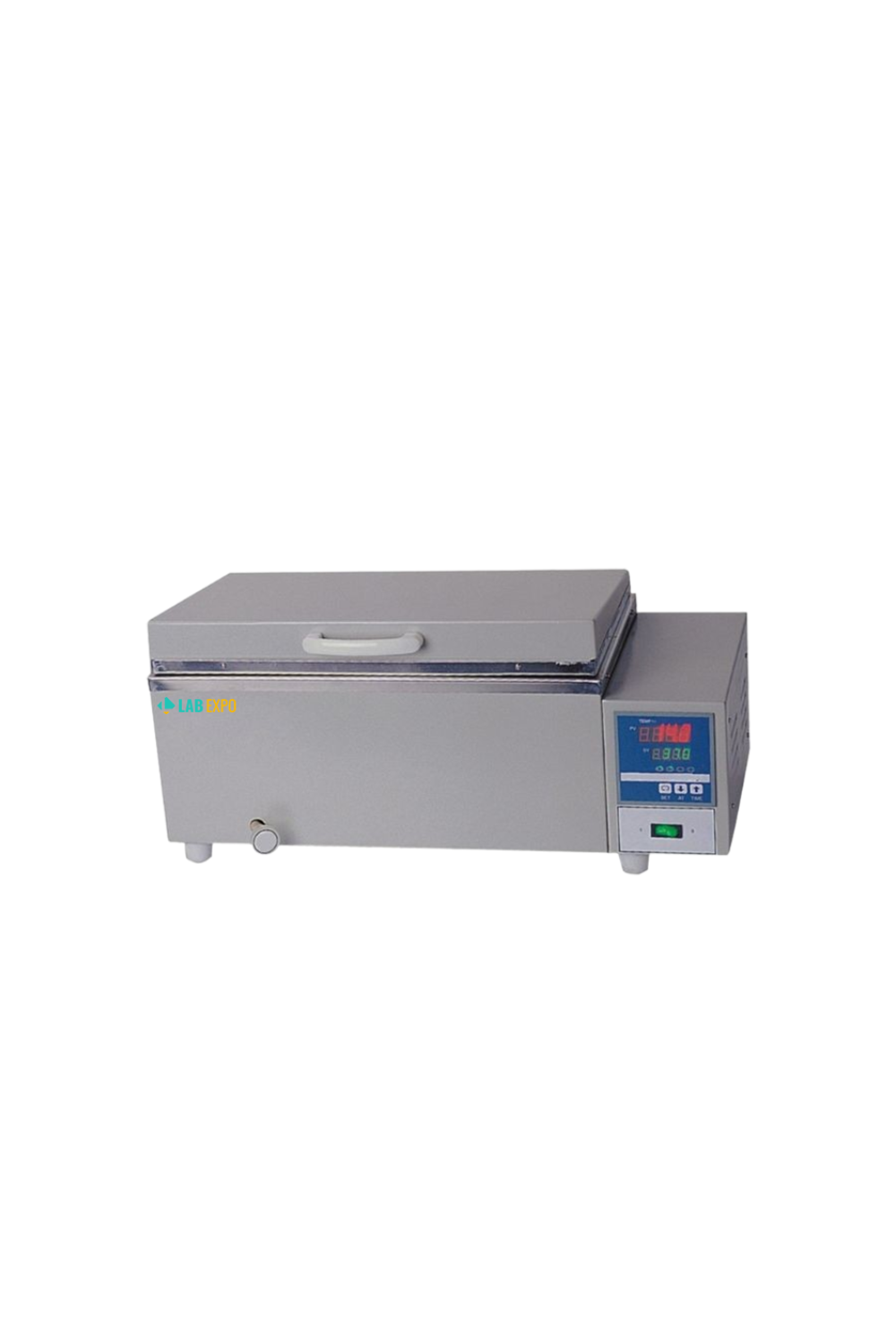 Labexpo Water Bath with an 11L chamber operates from room temperature plus 5 °C to 99 °C with ±0.5 °C stability. It includes a programmable timer from 1 to 999 minutes, delivering precise heating and uniform distribution. Ideal for incubation, reagent warming, and thawing with digital controls.