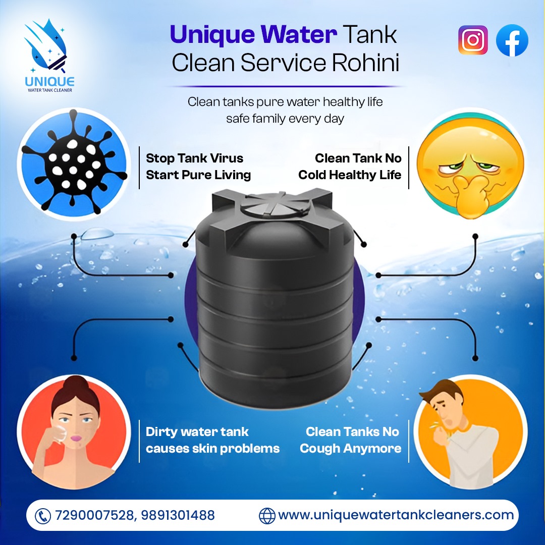 Ensure safe and pure water with Unique Water Tank, offering professional Water Tank Cleaning Service in Rohini. Our expert team uses advanced methods to remove dirt, algae, and harmful bacteria, making your tank clean and hygienic. Trust us for reliable and affordable cleaning solutions that protect your family’s health.
