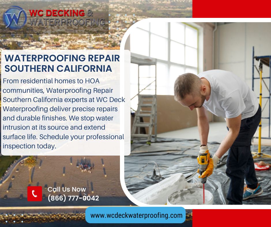 From residential homes to HOA communities, Waterproofing Repair Southern California experts at WC Deck Waterproofing deliver precise repairs and durable finishes. We stop water intrusion at its source and extend surface life. Schedule your professional inspection today. Visit us: https://wcdeckwaterproofing.com/