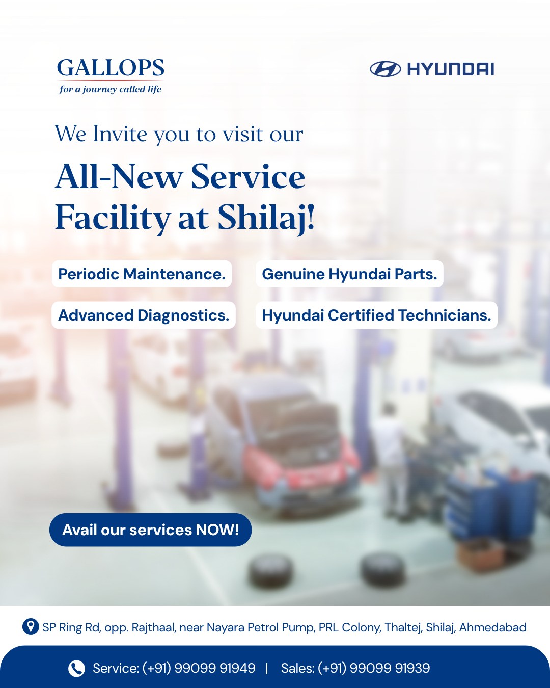 Experience unmatched care for your car at our All-New Service Facility at Shilaj. Expert Hands, Advanced Technology, and Genuine Parts—everything your Hyundai deserves. Visit us TODAY!