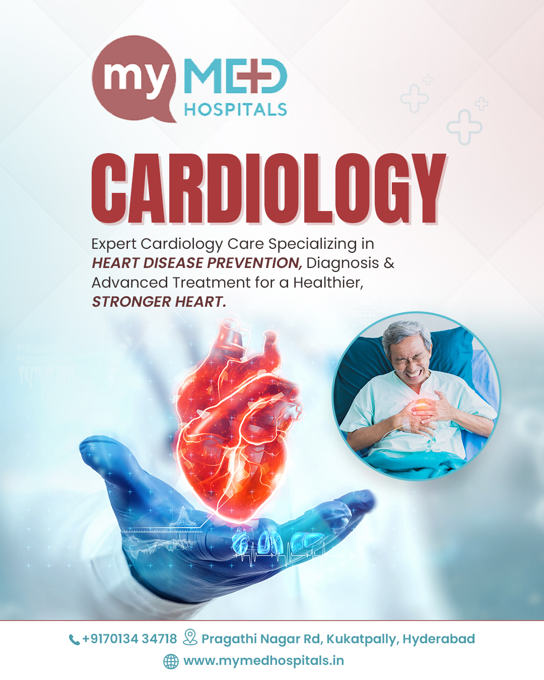 Myed Hospitals Cardiology specialists diagnose and treat heart disease, hypertension, arrhythmias, chest pain, heart failure, and preventive cardiac care. Choose MyMed for expert heart health support. Contact +917013434718 for appointments. VISIT US AT: https://mymedhospitals.in/best-heart-hospital-in-hyderabad/