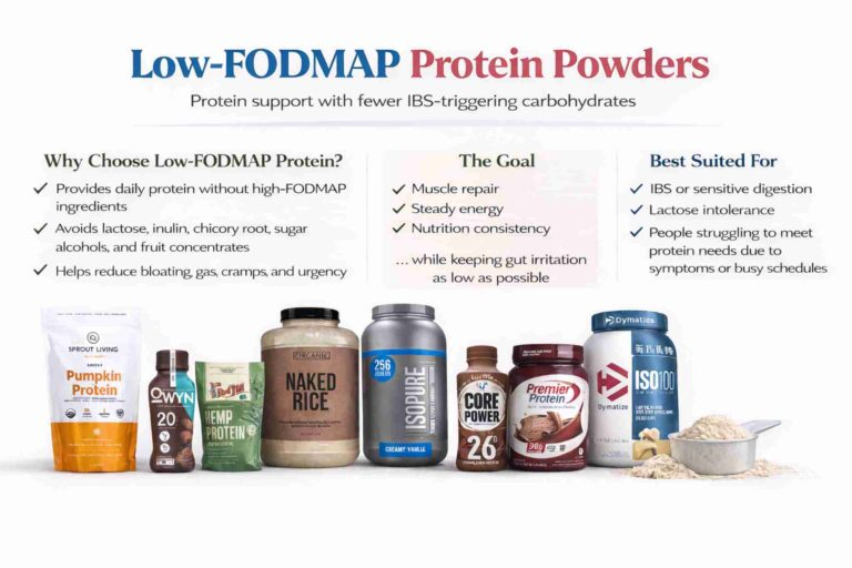 What makes a protein powder low FODMAP explained, covering sweeteners, additives, and protein types.