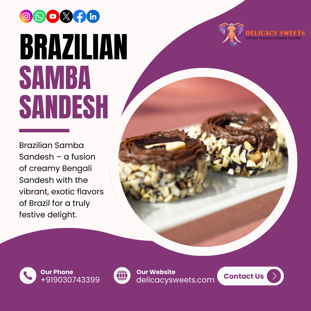Discover the joy of fusion with Brazilian Samba Sandesh – Bengal’s sweet meets Brazil’s samba spirit. Available at https://delicacysweets.com/product/brazilian-samba-sandesh. Dial 9030743399 now to order fresh and festive delights.