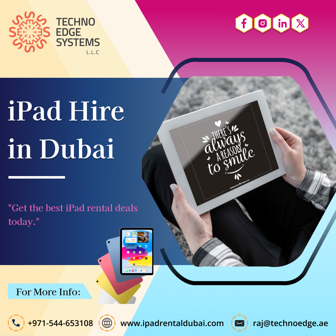 The best time to opt for iPad hire is during events, short-term projects, or temporary needs to maximize cost-efficiency and convenience. Techno Edge Systems LLC acts as beneficial provider of iPad Hire Dubai. For More Info Contact us: +971-54-4653108 Visit us: https://www.ipadrentaldubai.com/ipad-hire-dubai/