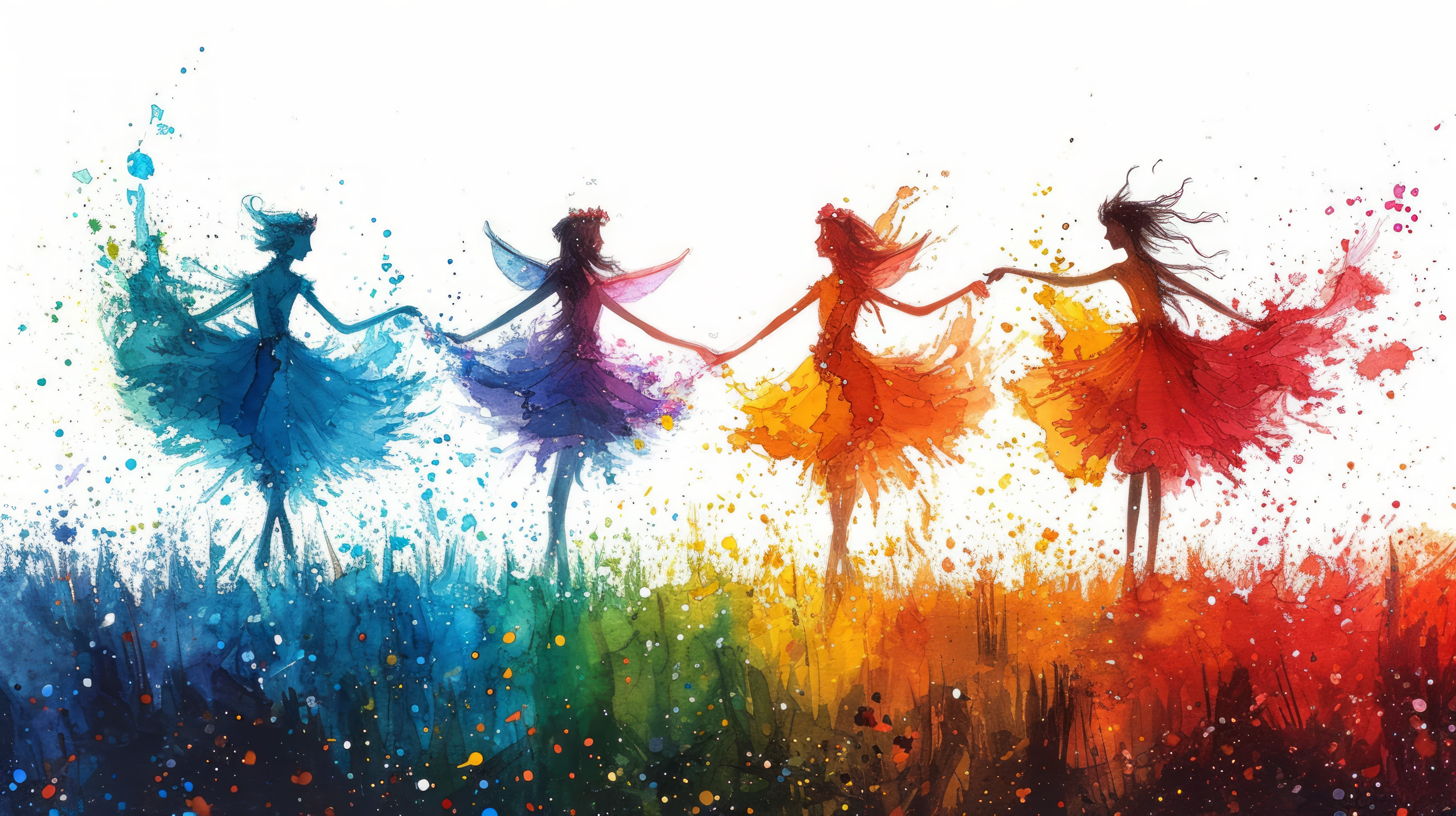 whimsical illistration of A group of fairies painting the sky with vibrant colorsperfect book illust