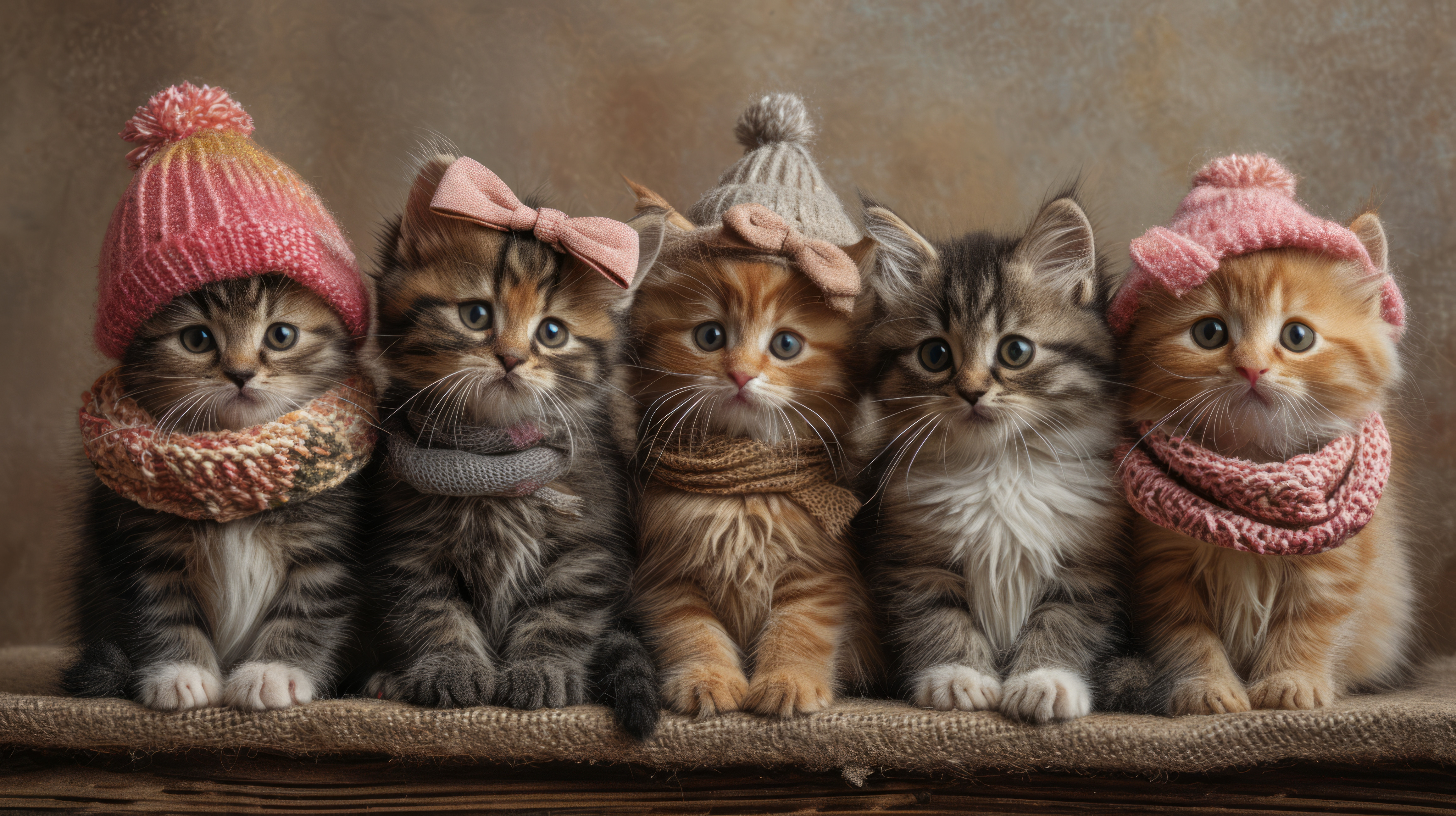 whimsical illistration of A group of kittens having a fashion show with bows and ribbonsperfect book