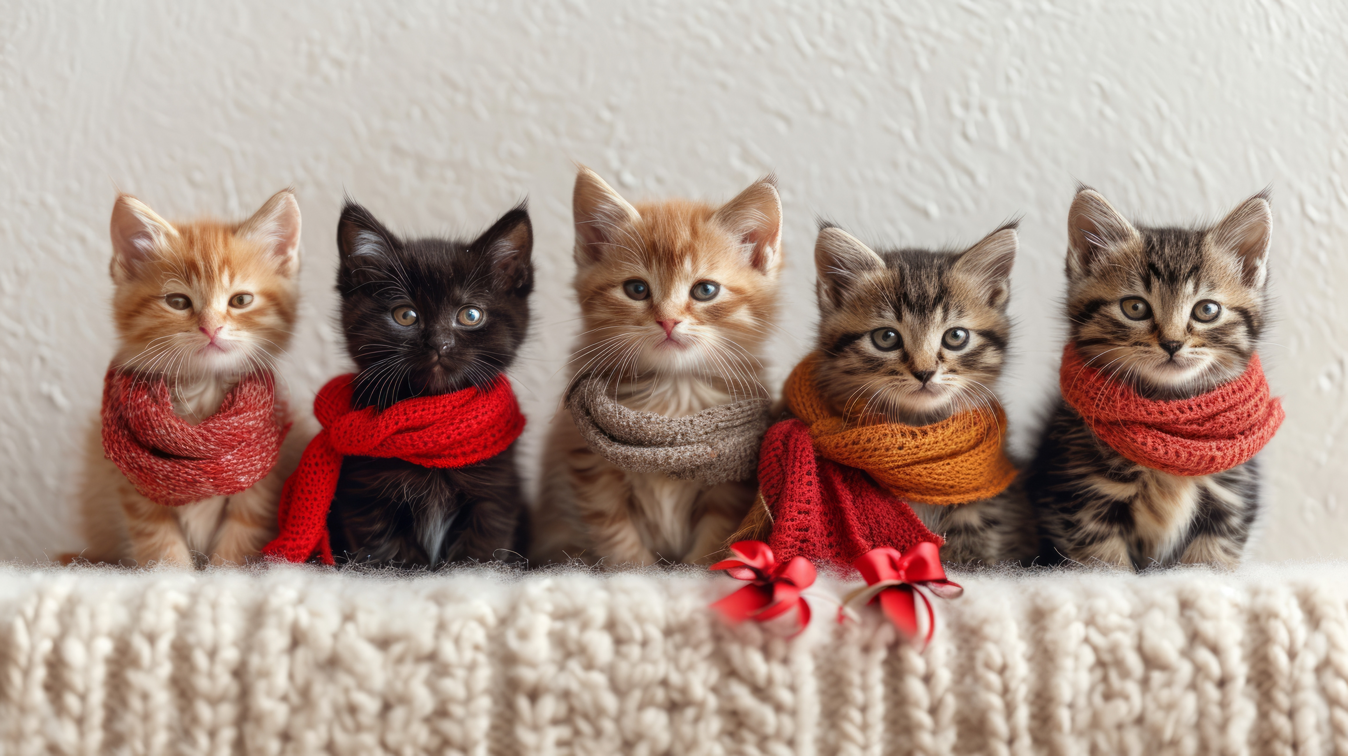 whimsical illistration of A group of kittens having a fashion show with bows and ribbonsperfect book
