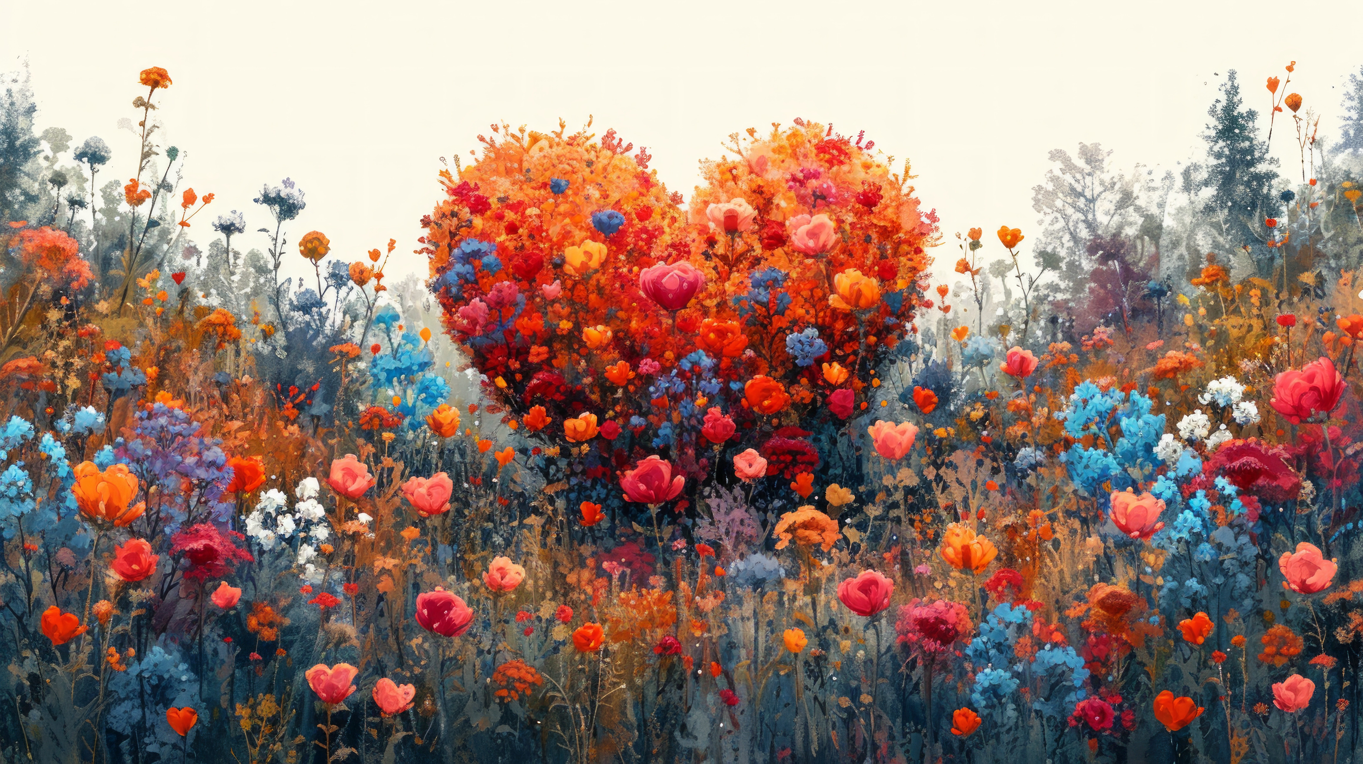 whimsical illistration of A magical garden where flowers bloom in the shape of heartsperfect book il