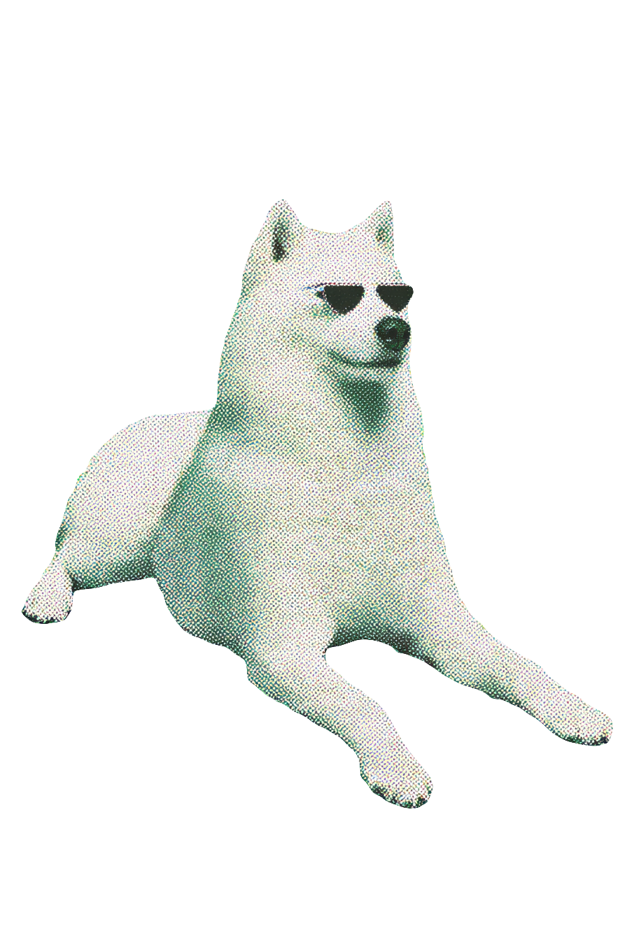 white dog in triangle sunglasses