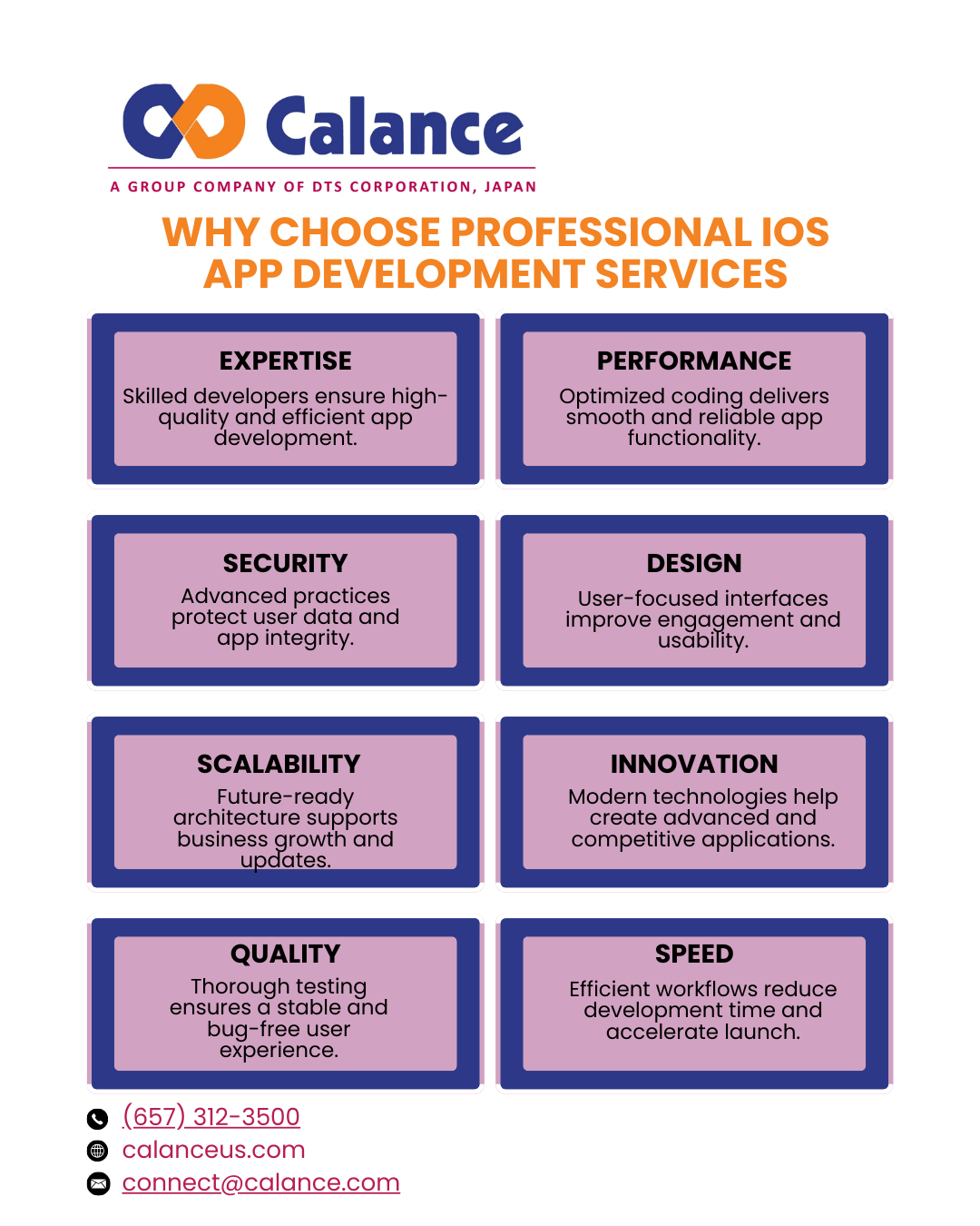 Calance provides expert iOS App Development Services to help businesses create secure, scalable, and high-performance mobile applications. Our experienced developers leverage the latest Apple technologies to deliver user-friendly apps tailored to your goals. From concept validation and UI/UX design to development, testing, and App Store deployment, Calance offers end-to-end iOS solutions. We focus on performance optimization, seamless integrations, and exceptional user experiences that drive engagement and business growth. Whether you are a startup or an enterprise, partner with Calance to build innovative iOS applications that support long-term success and deliver measurable results in the competitive mobile market.