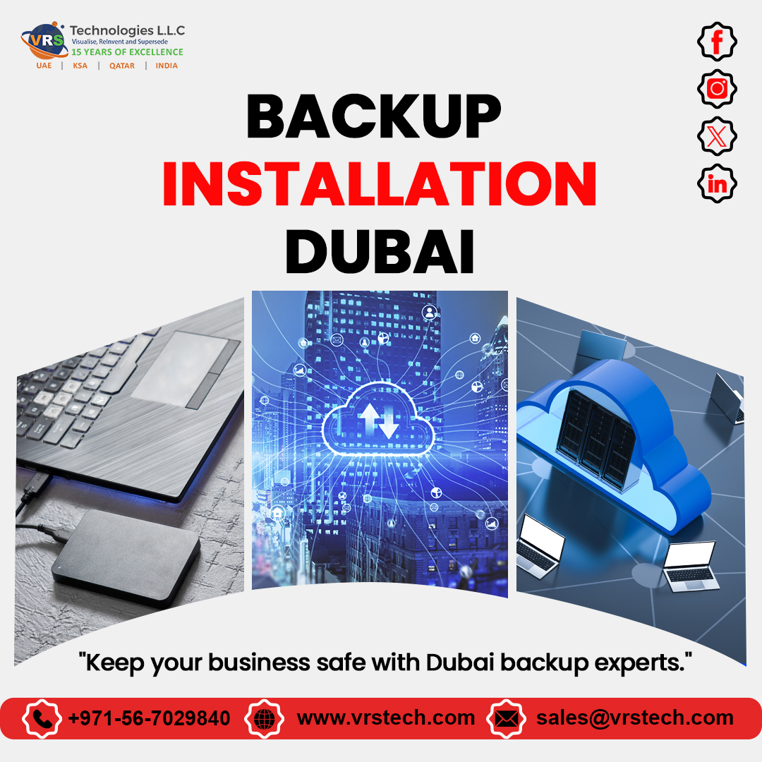 Data loss can disrupt operations and result in significant financial losses. At VRS Technologies, we offer dependable Backup Installation Dubai services to ensure your data is securely stored and easily recoverable. Our expert solutions provide peace of mind with regular backups and quick restoration options. Protect your business from unforeseen risks. Contact us at +971 56 7029840 for tailored backup solutions.