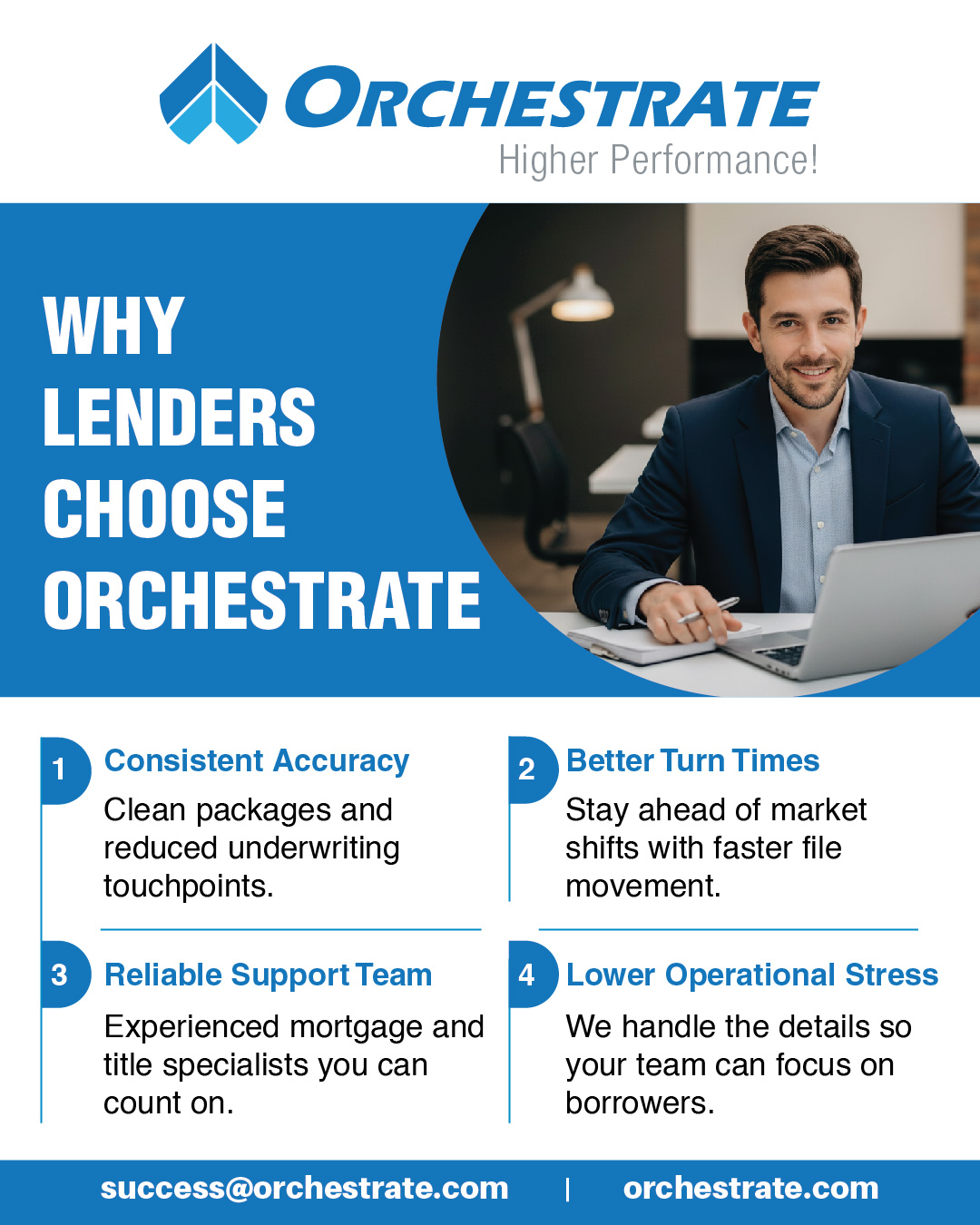 Know why lenders trust Orchestrate for consistent accuracy, faster loan turn times, reliable mortgage support, and reduced operational stress while helping lending teams achieve higher performance.
