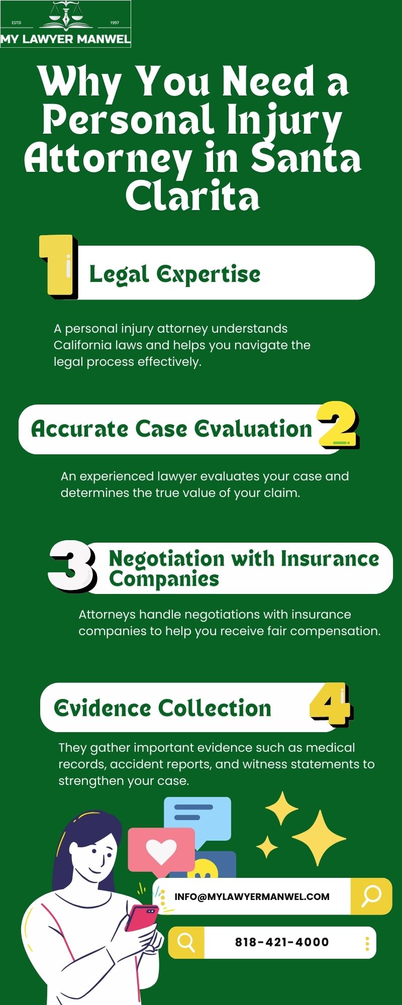 Discover why hiring a personal injury attorney in Santa Clarita is important after an accident. My Lawyer Manwel provides experienced legal guidance, helps protect your rights, manages insurance negotiations, and works to secure fair compensation for medical bills, lost wages, and other damages.