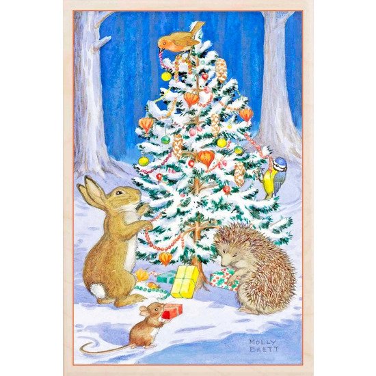wooden postcard christams tree animals