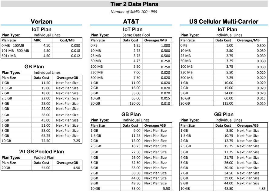 WTI Tier 2 Data Plans