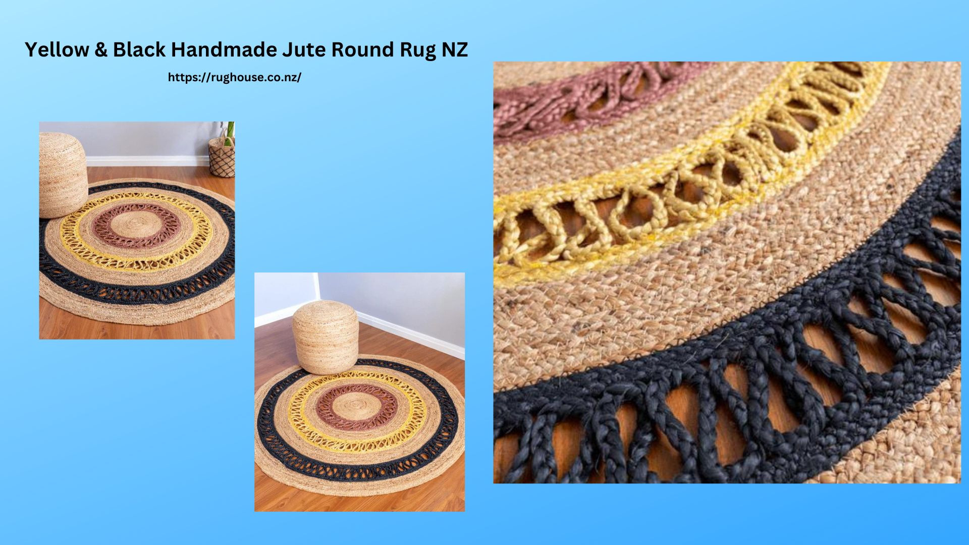 Yellow & Black Handmade Jute Round Rug NZ