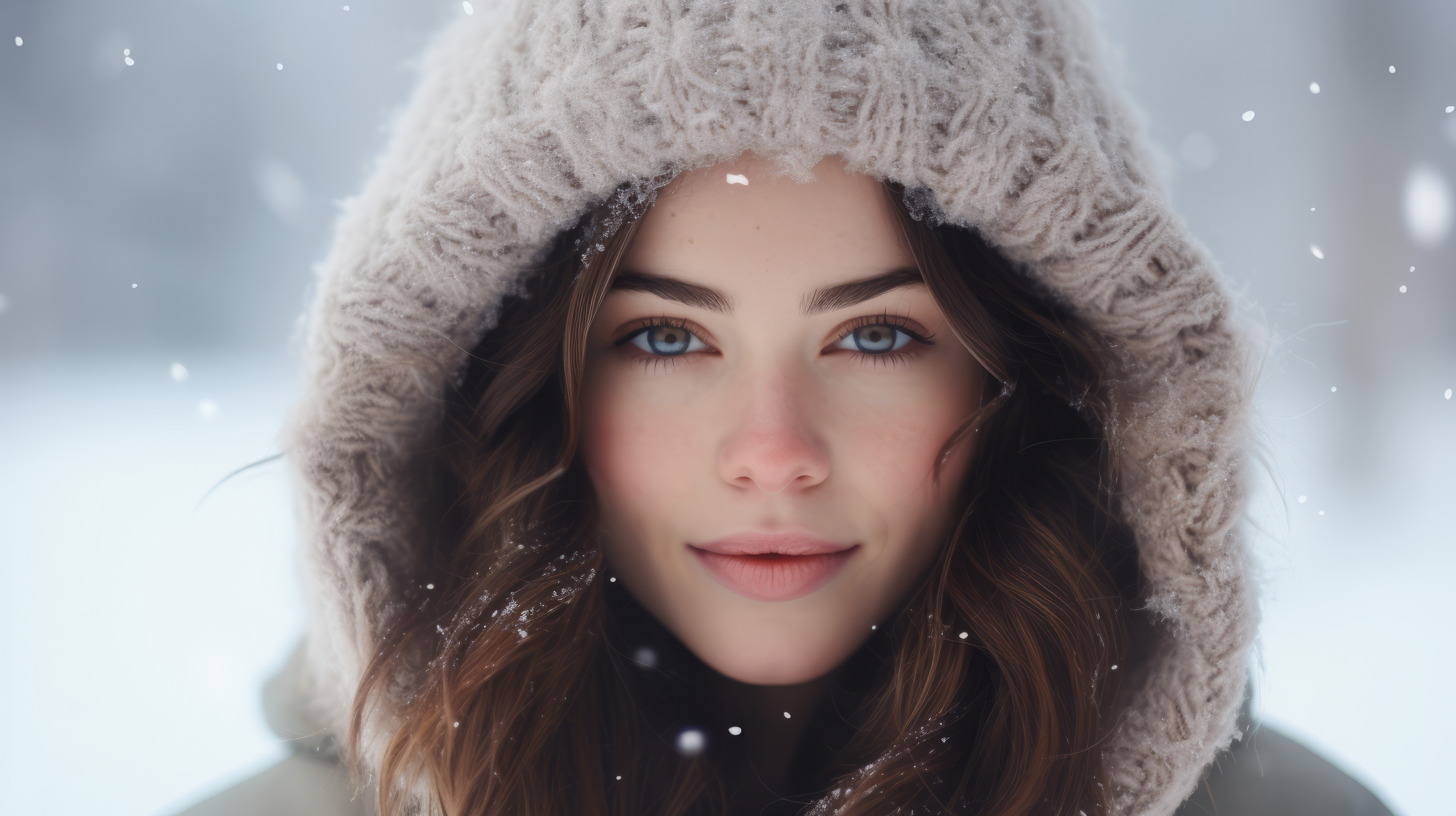 Young and pretty woman enjoying a snowy winter day soft focus 00782 02