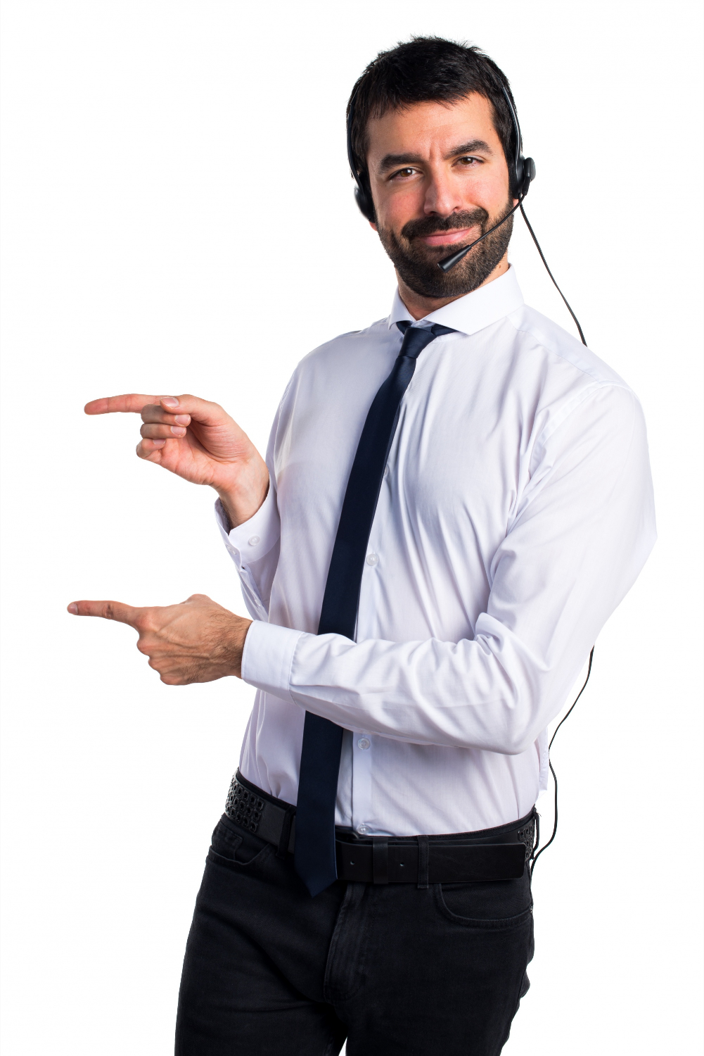 young man with headset pointing lateral